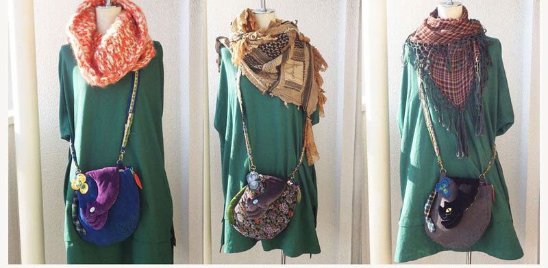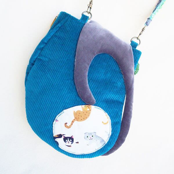 気ままに森をお散歩する猫さんをイメージした、別珍やコーデュロイを使った小さめバッグです。