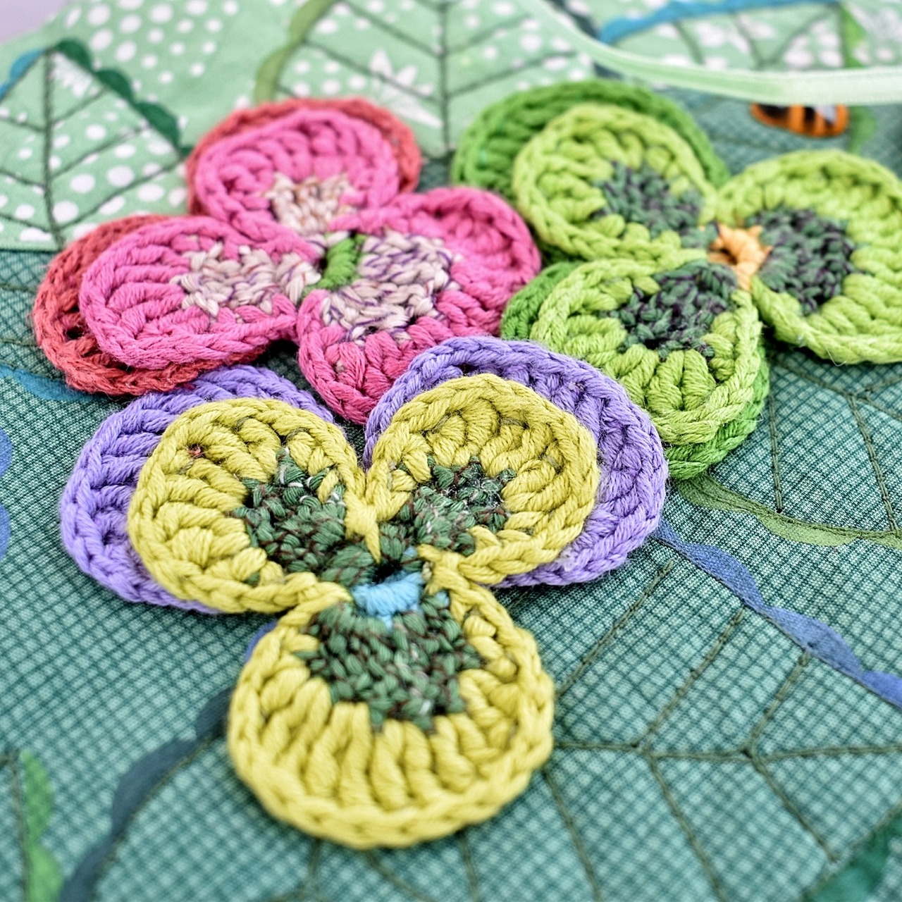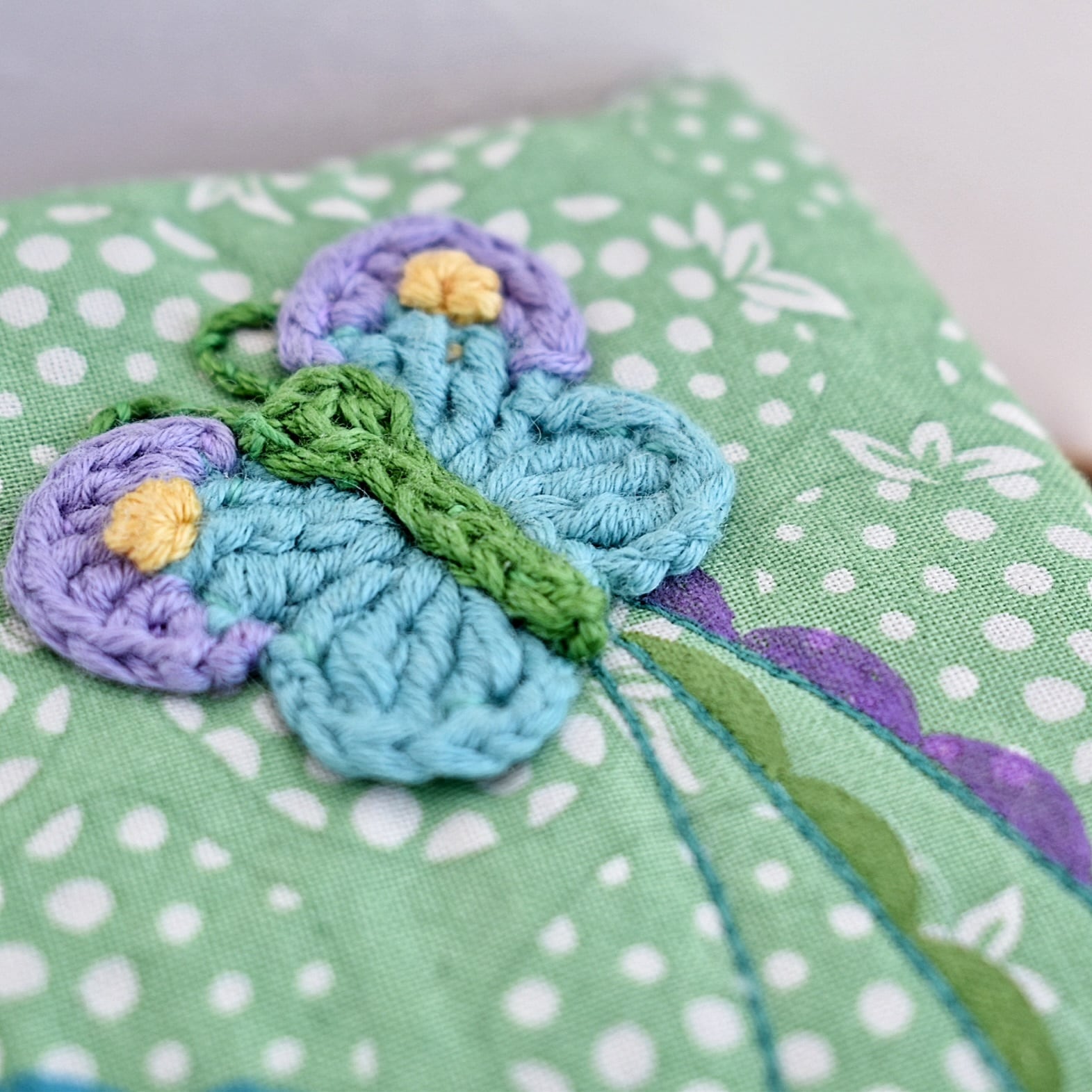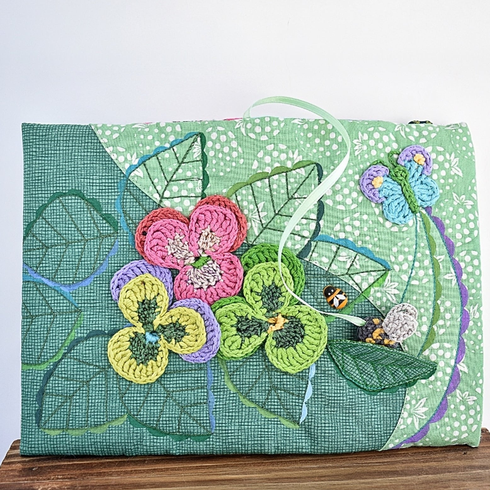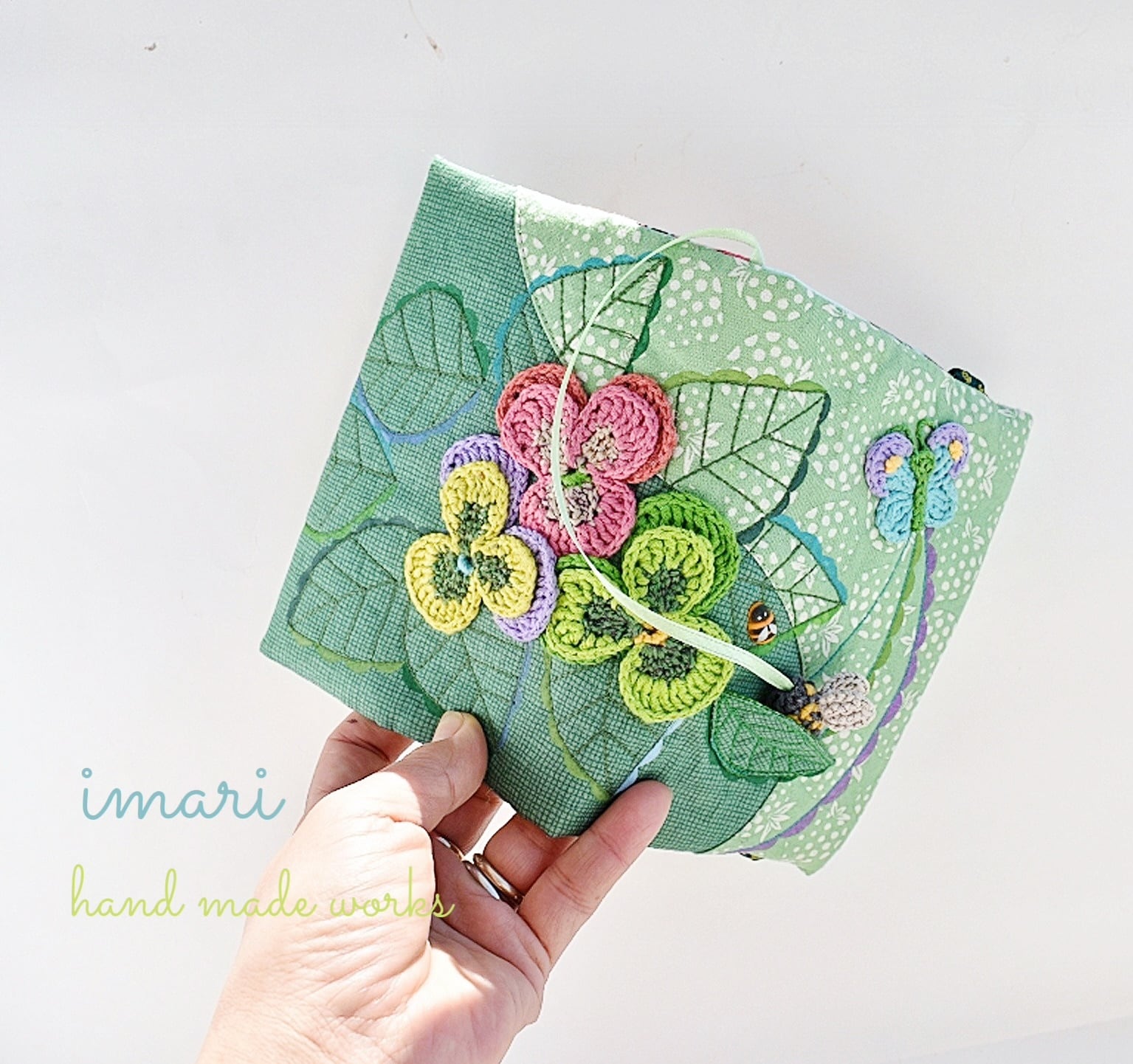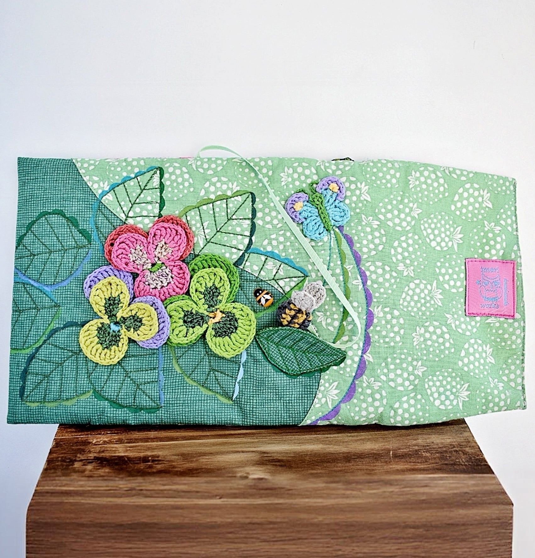 カラフルなモチーフ(パンジー・蝶・ミツバチ)と、