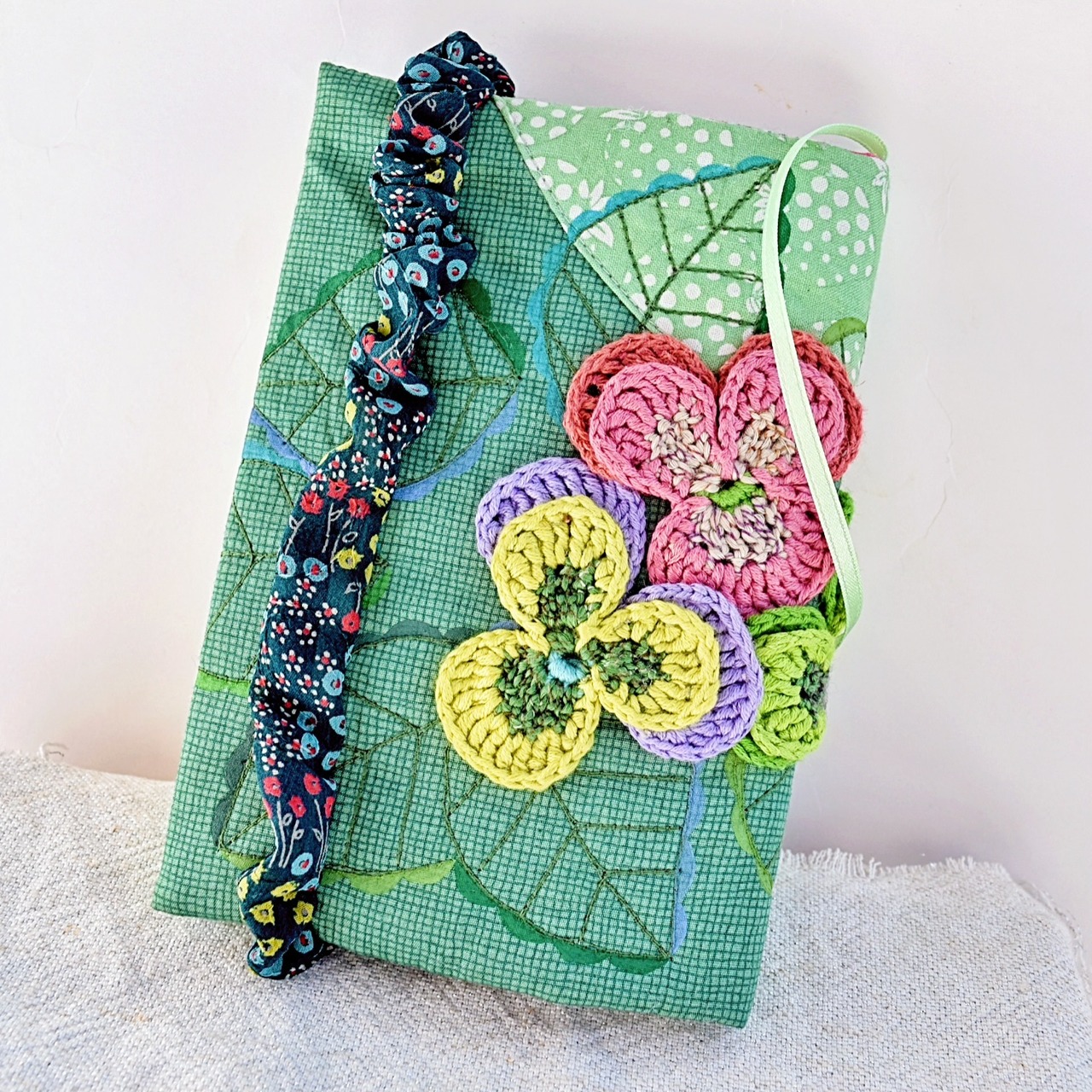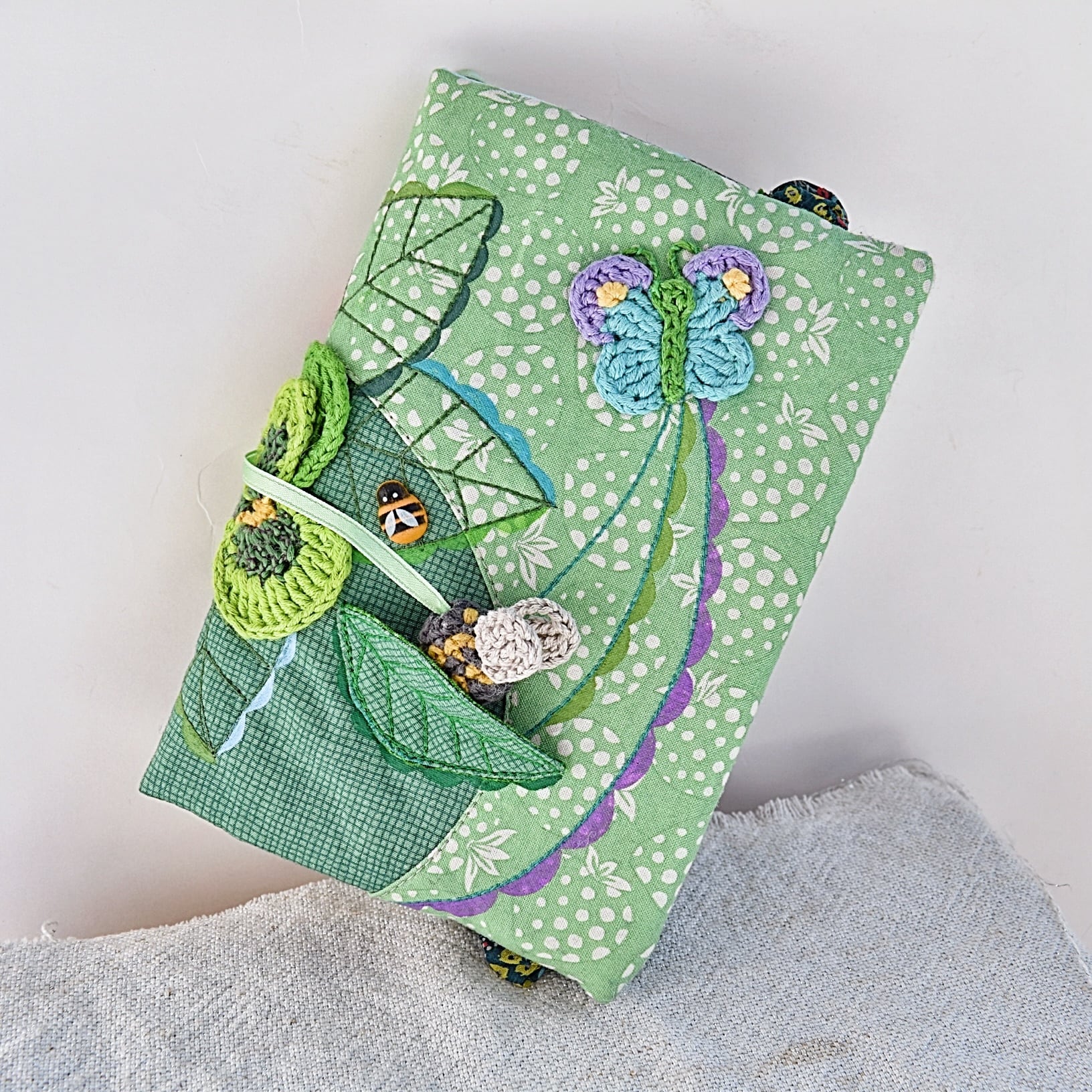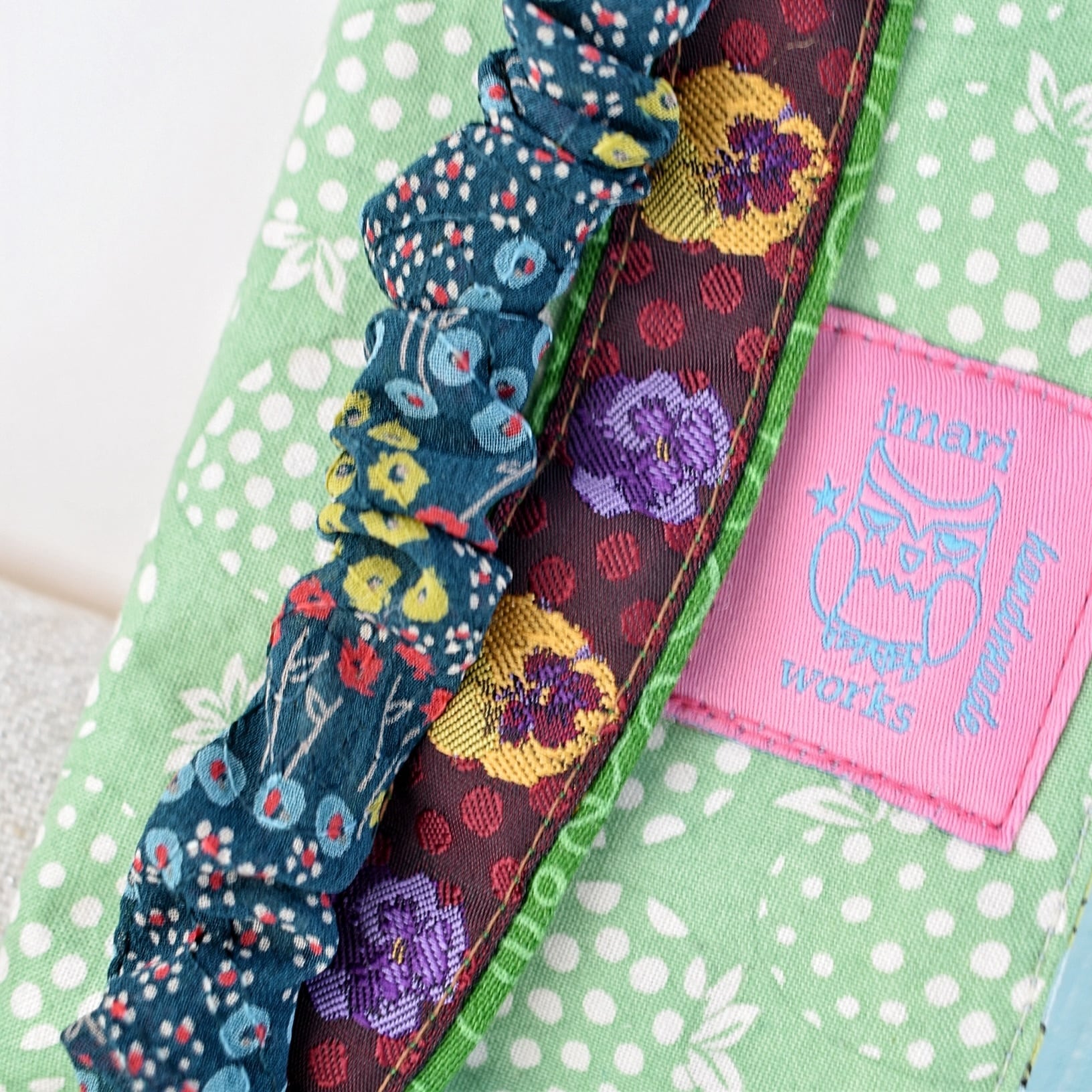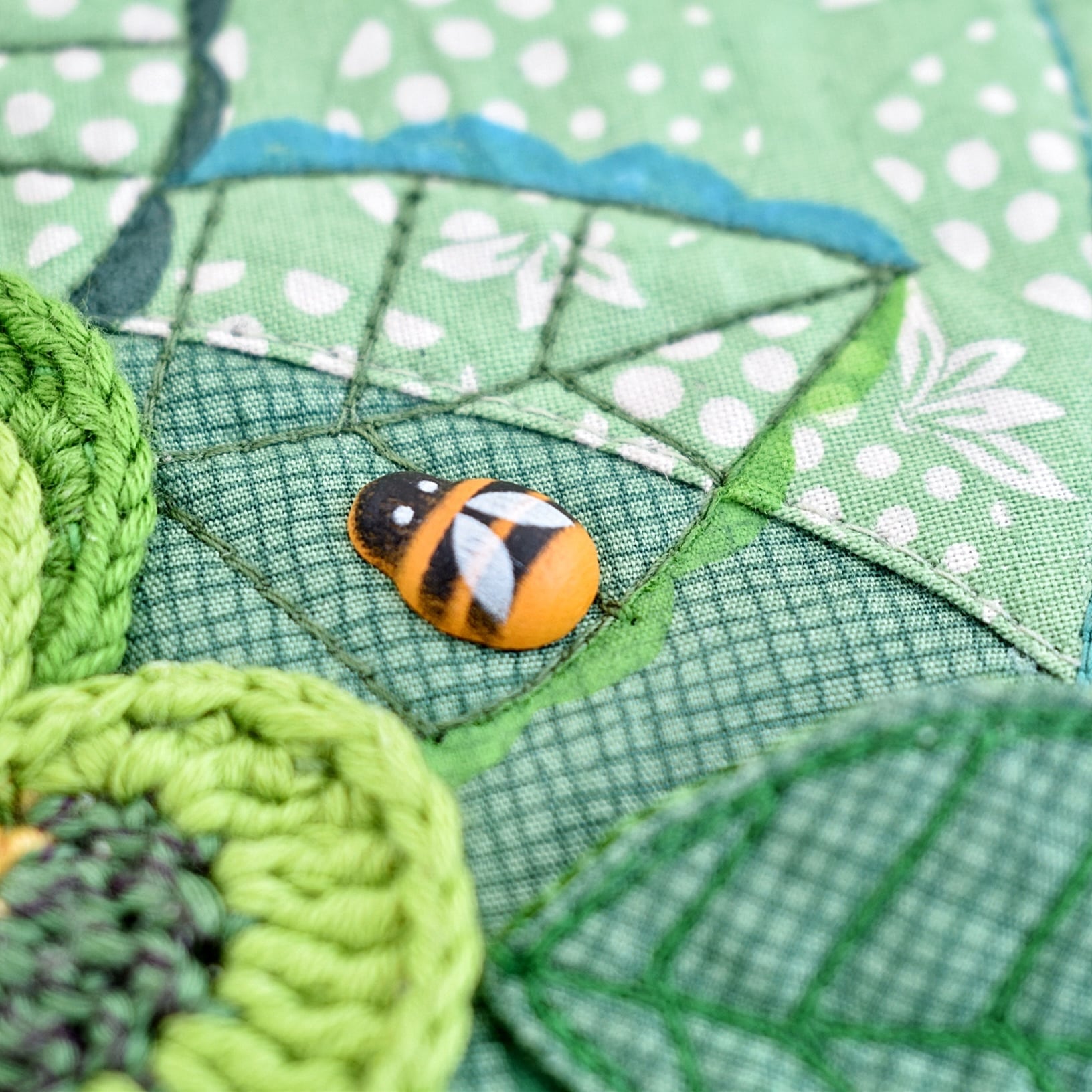 ミシンステッチや布用の絵の具で描いたグリーンなど、