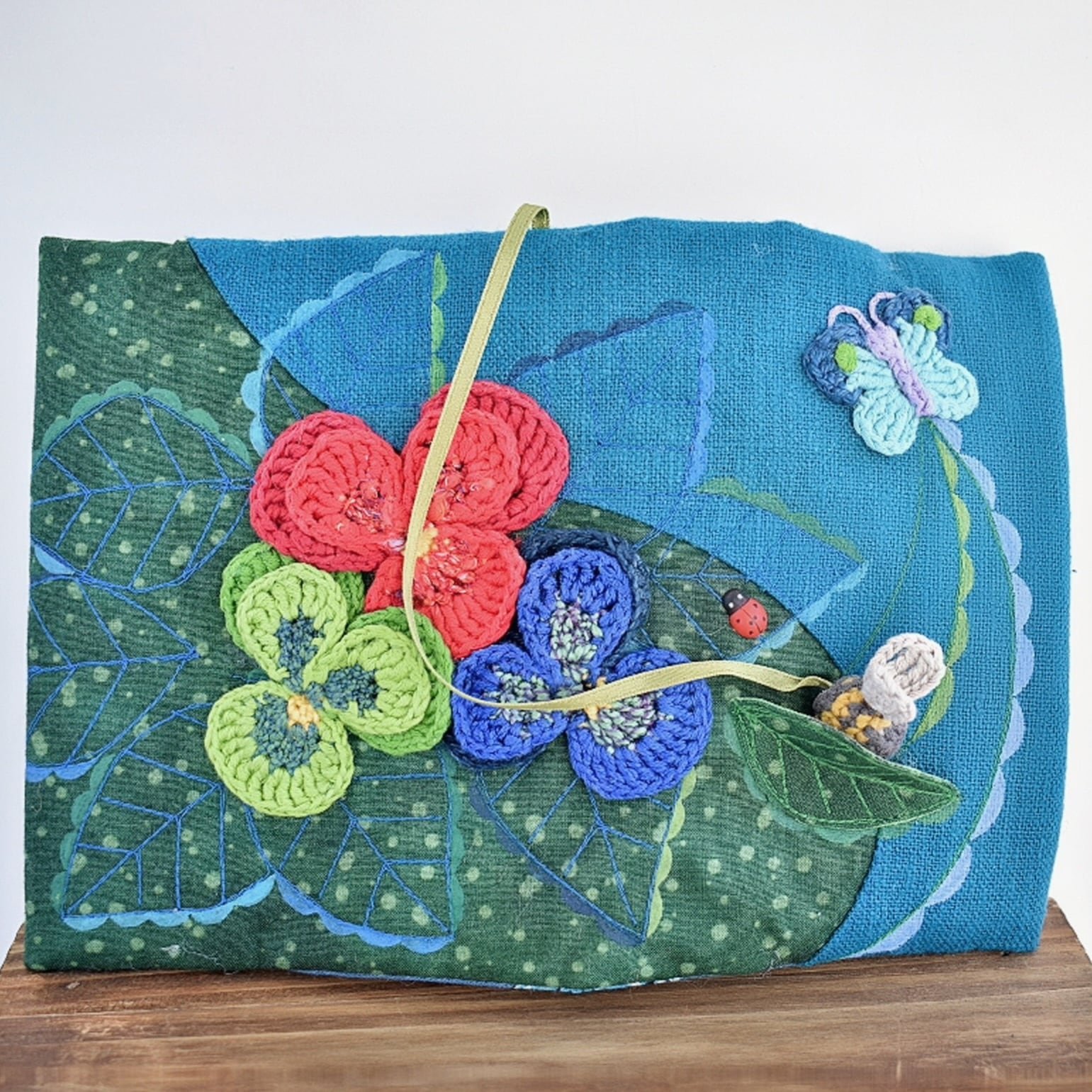 カラフルなモチーフ(パンジー・蝶・ミツバチ)と、