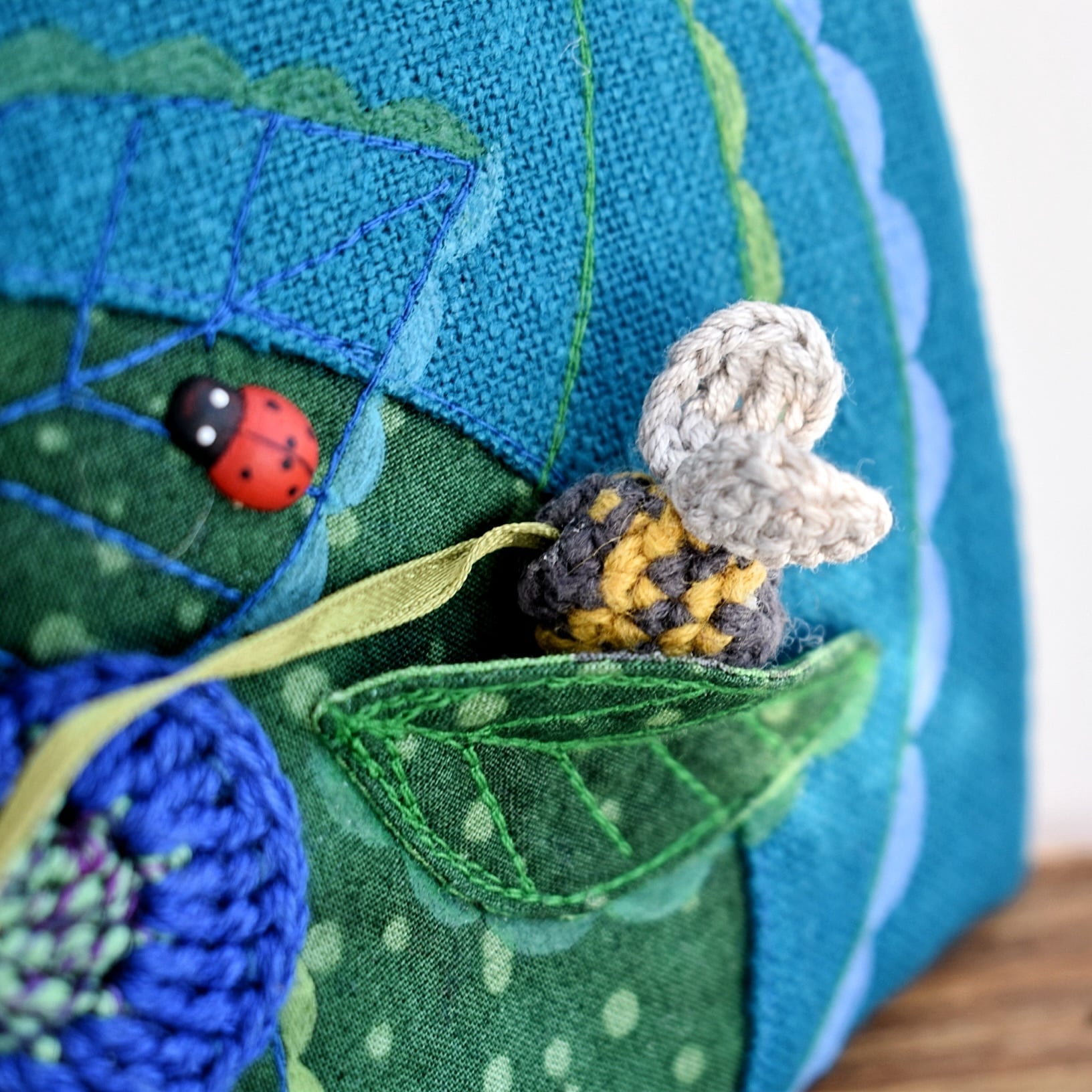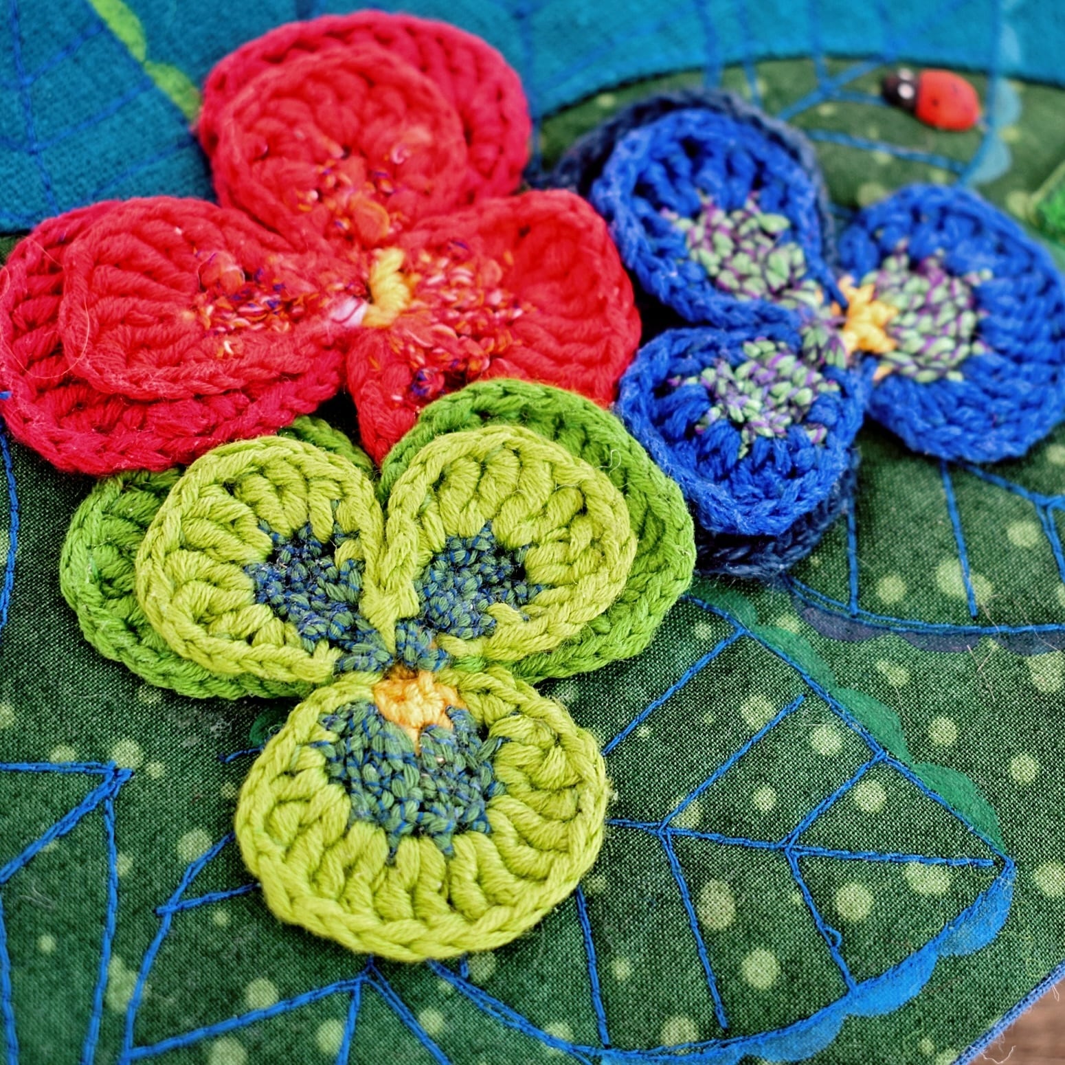 ミシンステッチや布用の絵の具で描いたグリーンなど、