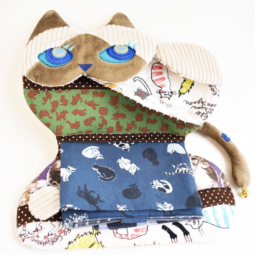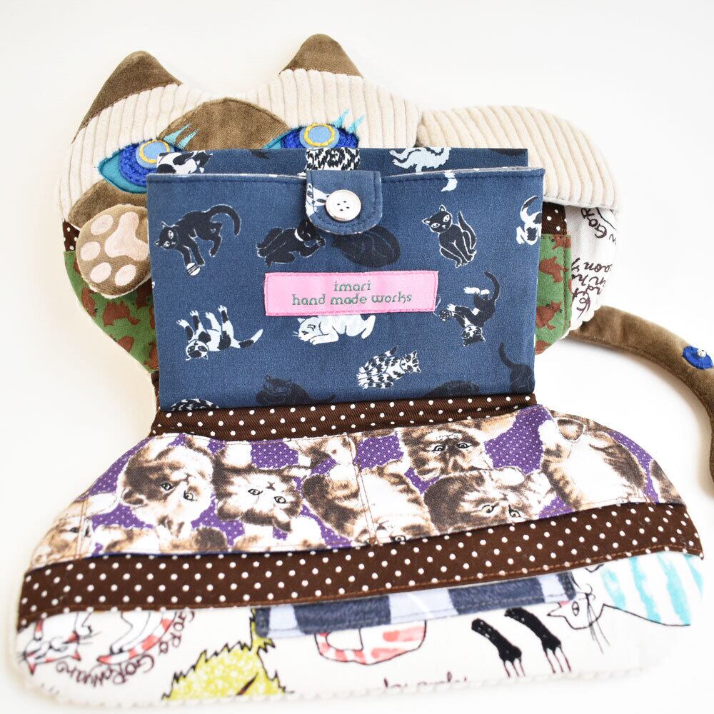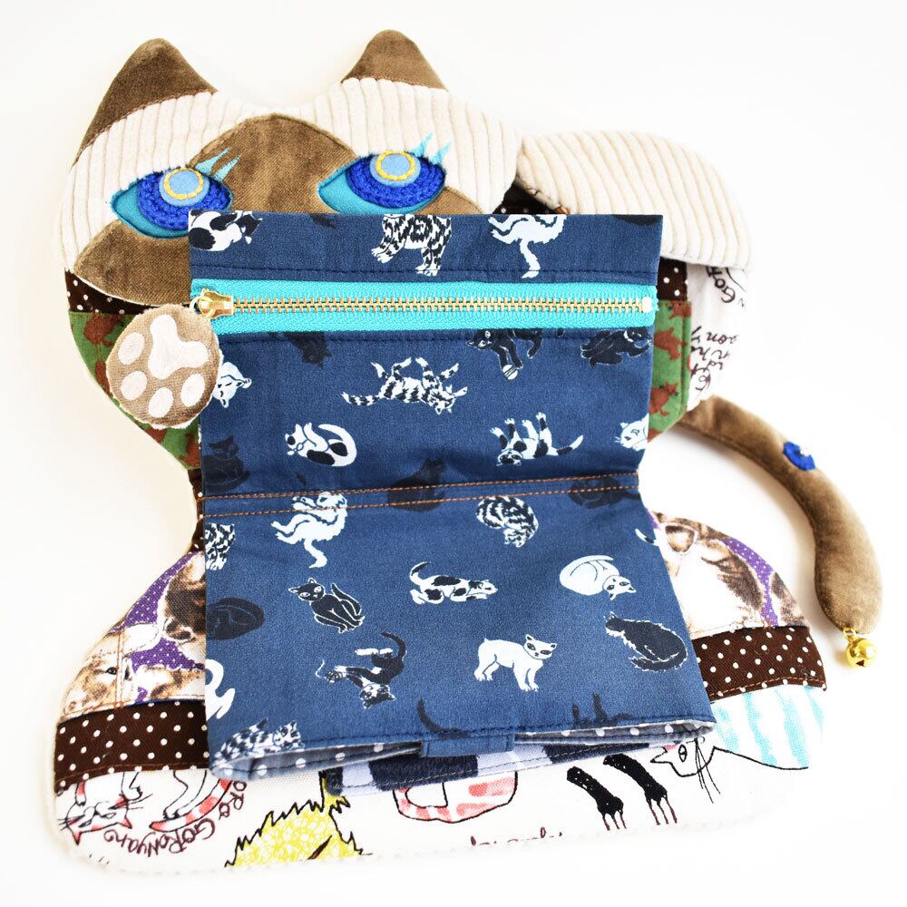 内側の収納部分には猫柄のプリント生地を使い