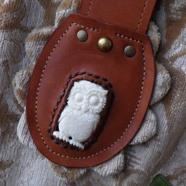 ふくろうさんのエンブレムは、レザーメインで作りました。