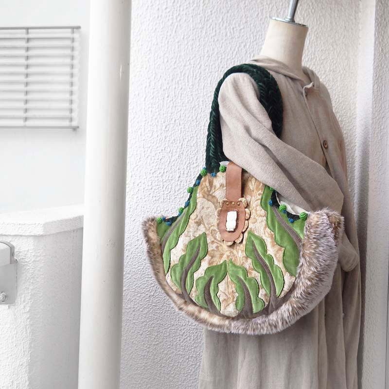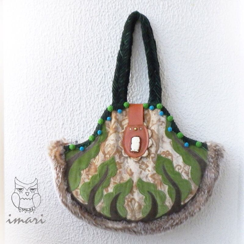 森のモチーフで飾ったふかふかのファーマチバッグです。