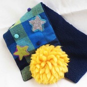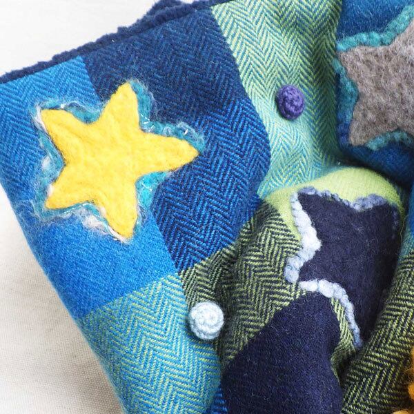 表地は羊毛と毛糸で作った星モチーフを、楽しく飾りました
