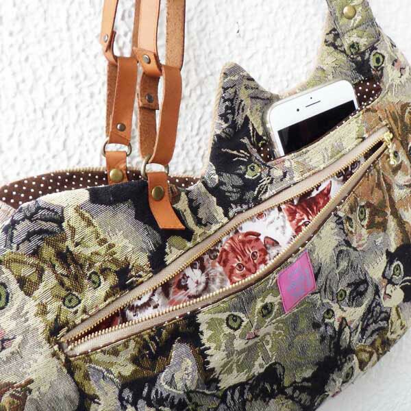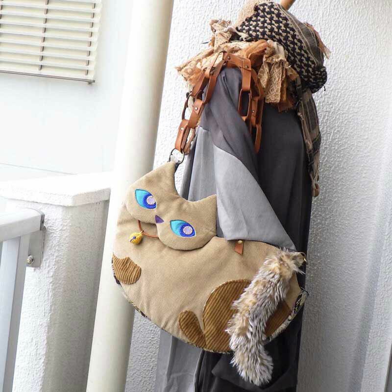おくちパックリ☆にゃんこショルダーbag かーきブラウンさん