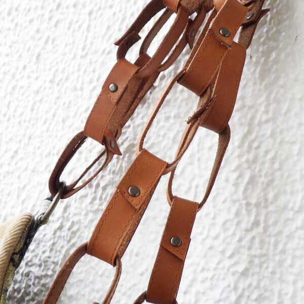 自作のチェーンのようなレザーのショルダーや