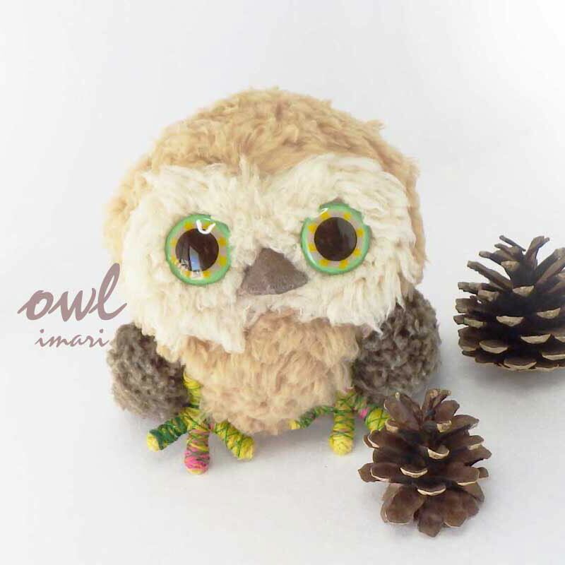 モコモコ素材で作った、ゆるゆるふくろうさんのぬいぐるみです。
