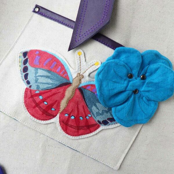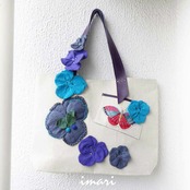 蝶ちょもウキウキ♪森に咲いたパンジーバッグ☆ブルーグレー