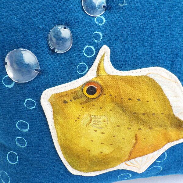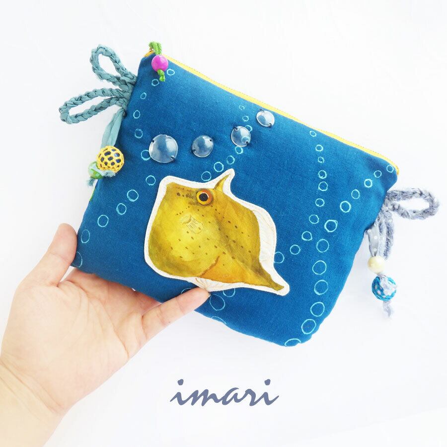 と布描き絵の具で手描きしたお魚を、ふかっと(厚手のキルト芯使用)したポーチです♪
