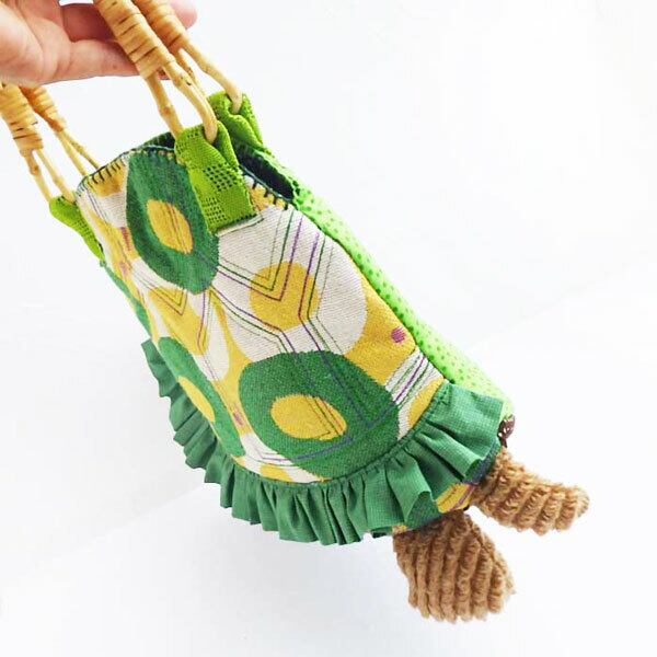 素材:バンブー(丈3本)持ち手・コットン生地・ジャガード生地・ビンテージボタン・コットン糸他