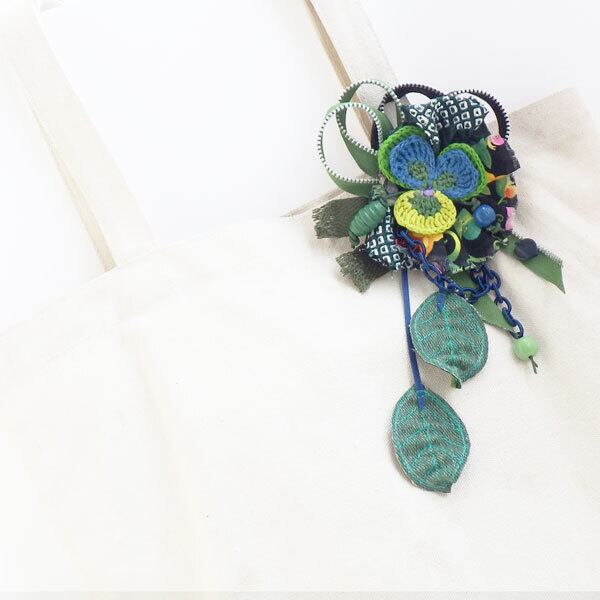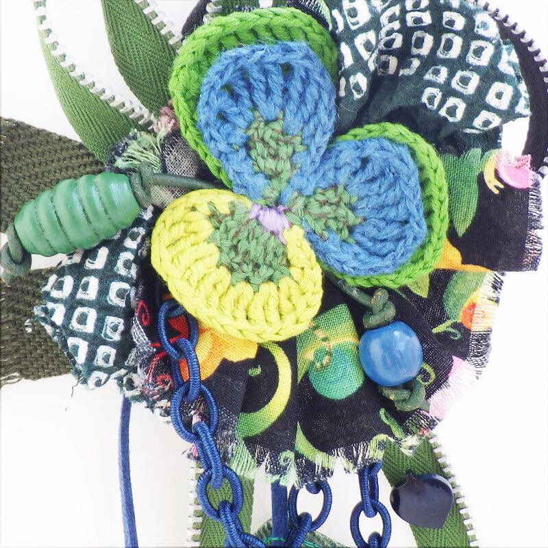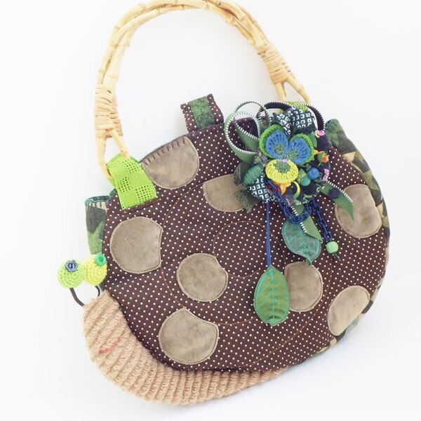 素材:コットン糸・used和服生地・ウッドビーズ・金属ファスナー