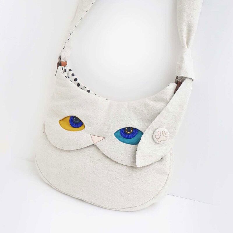 おくちパックリ☆オッドアイのキラキラ白猫さんバッグ