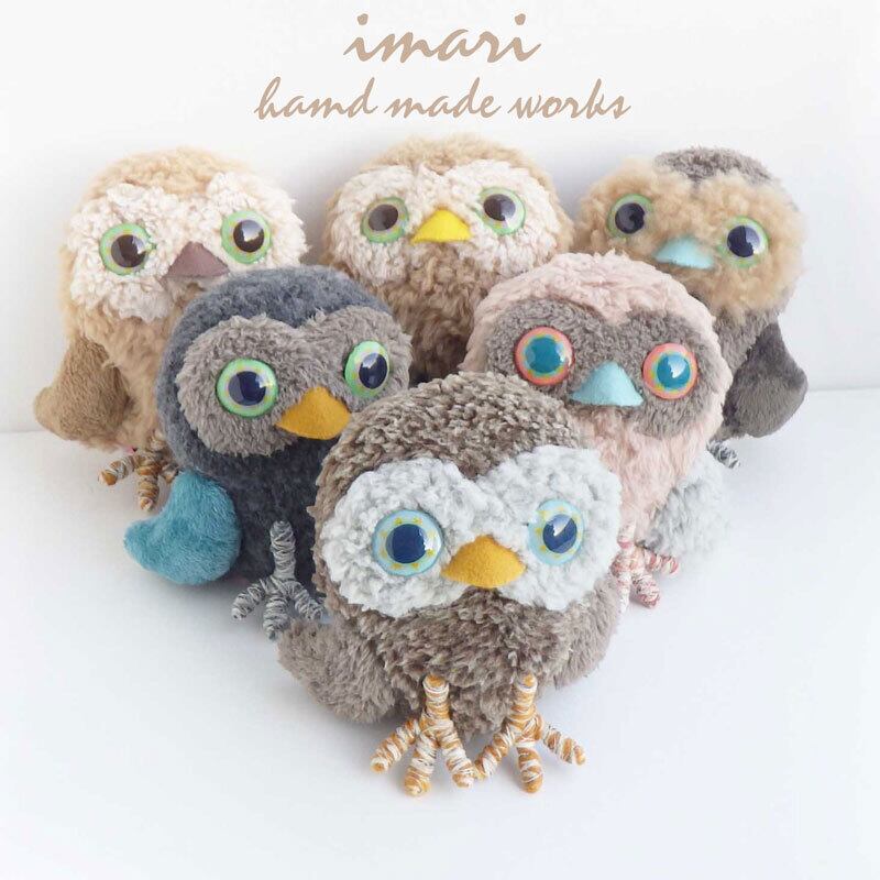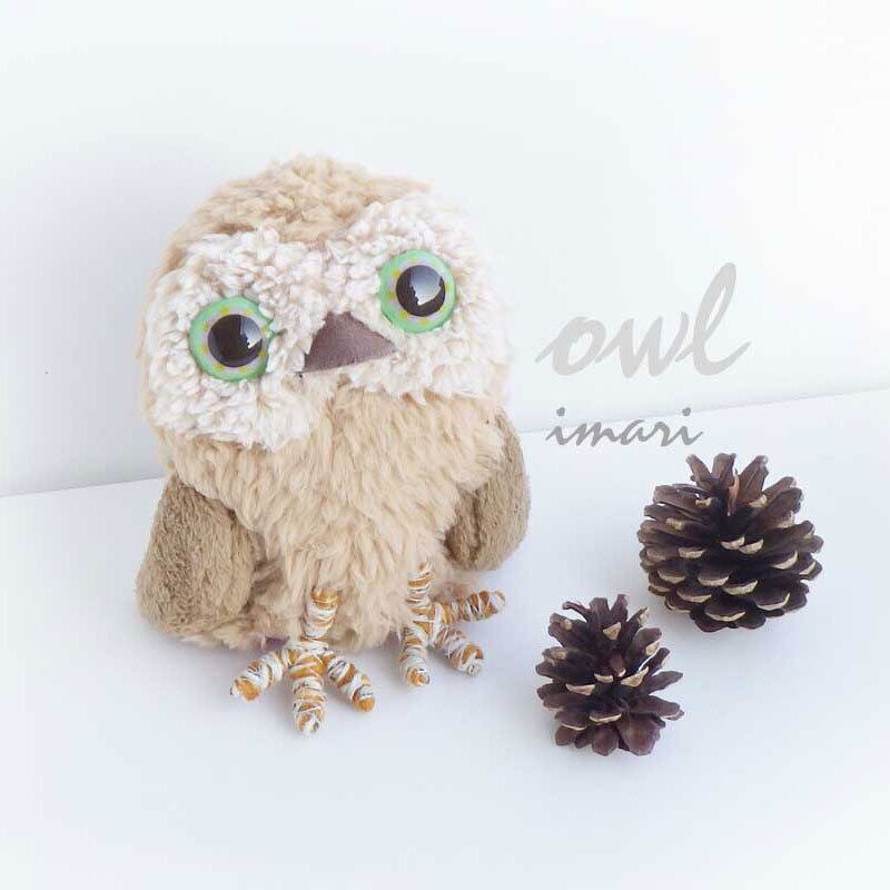 モコモコ素材で作った、ゆるゆるふくろうさんのぬいぐるみです。