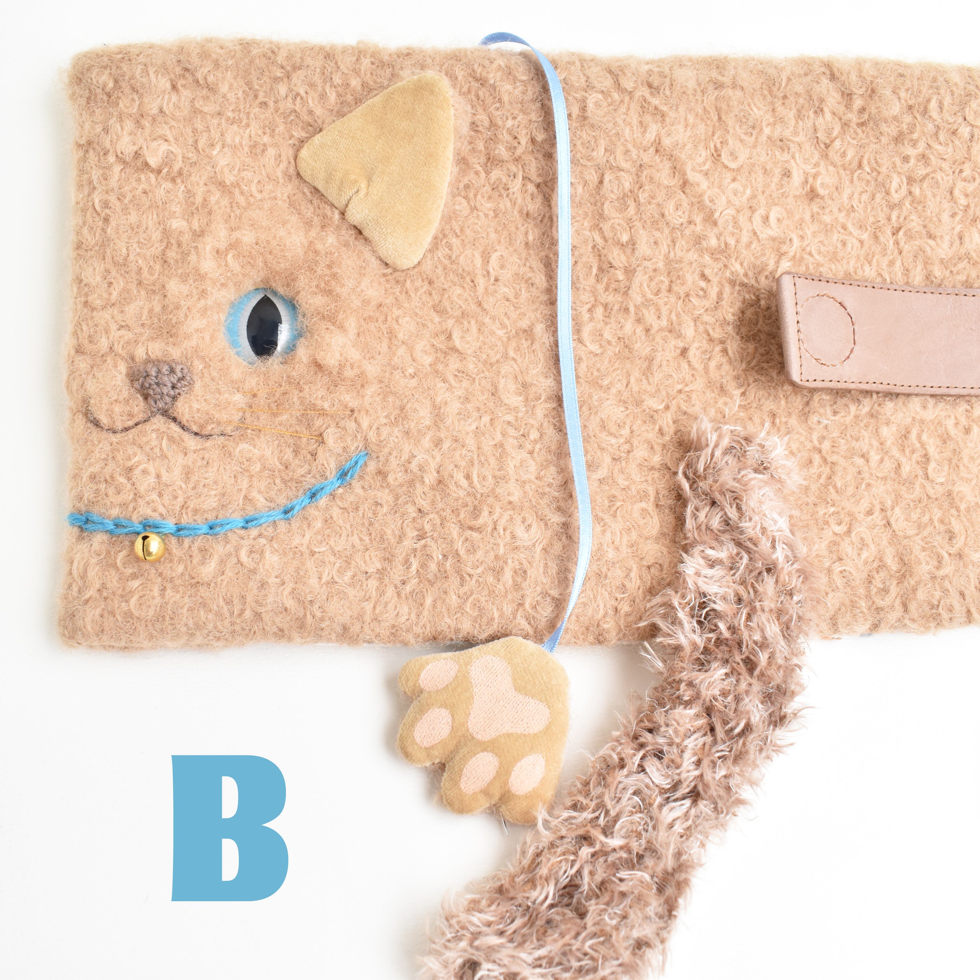 ☆ブルーアイのかーりーなカフェラテさん☆モケモケ猫さんブックカバー(手帳カバー) new version