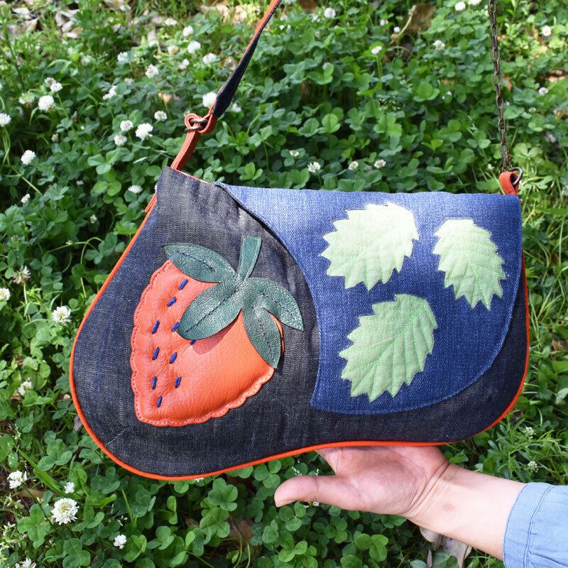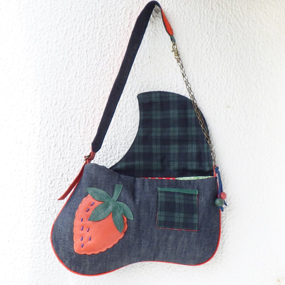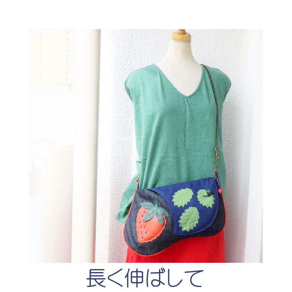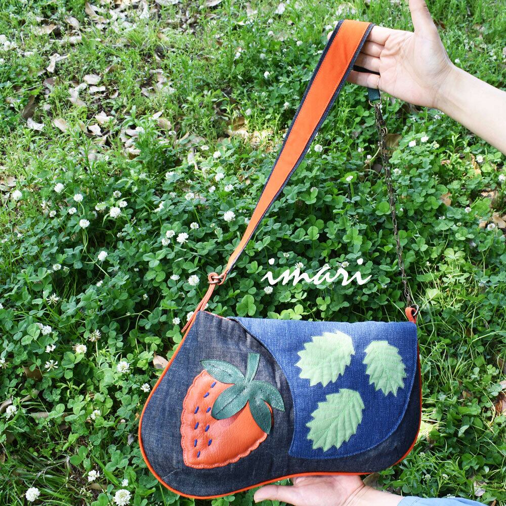 『イチゴ』モチーフのデニムショルダーバッグ☆