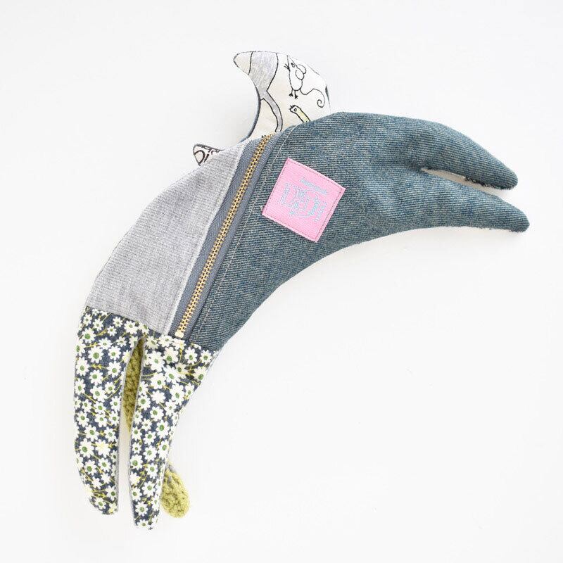 素材:別珍・コットン布・デニム生地・鈴・ファスナー・毛糸・ベロアほか