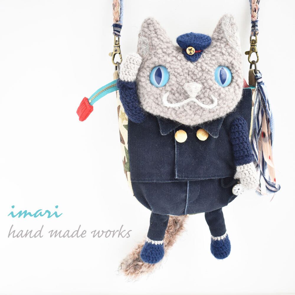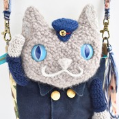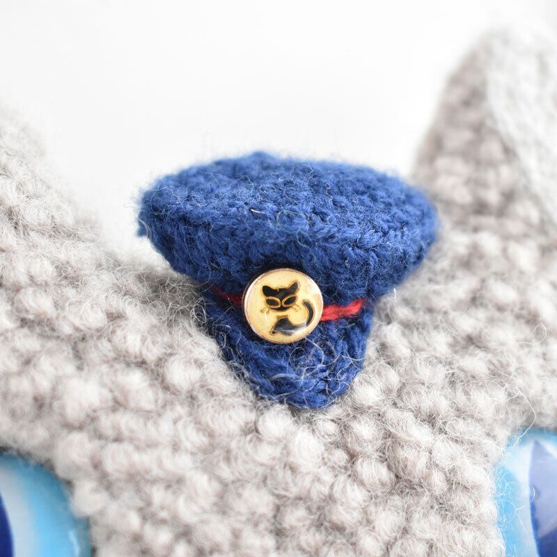猫ボタンを飾った制帽(かぎ針で編みました。)