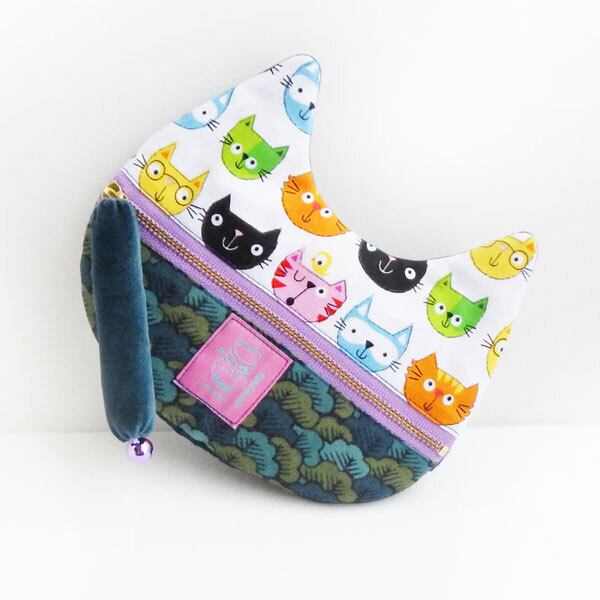 バッグの中が楽しくなっちゃう☆別珍を使った、にゃんこの形のファスナーポーチです。