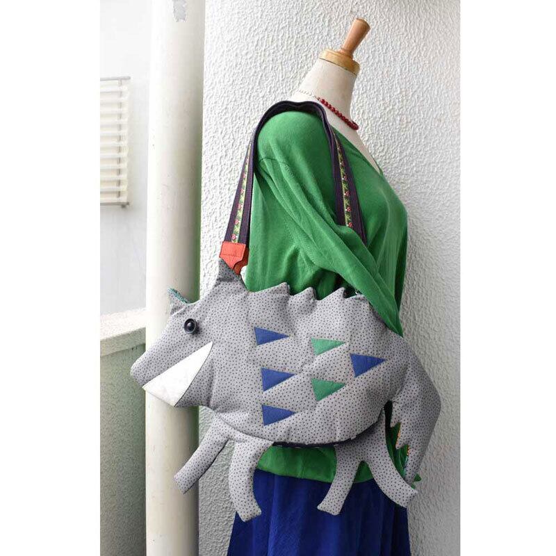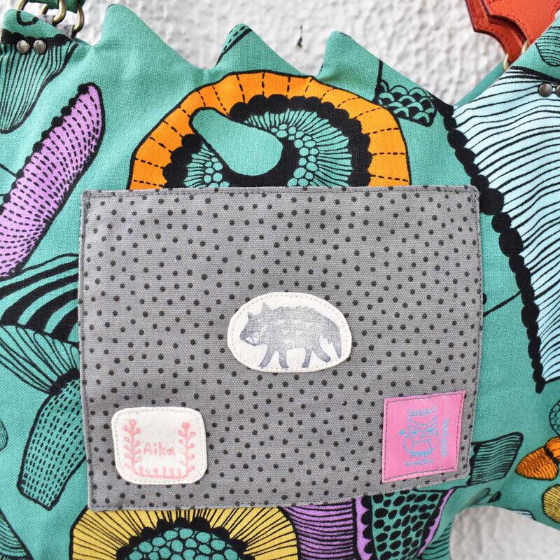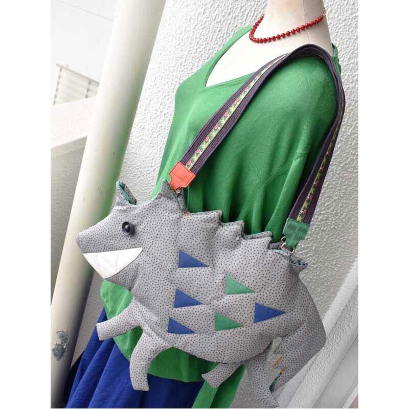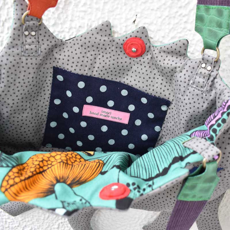 【キノコショルダー紐のオオカミさんバッグ・グレーのランダムドット】aika✕imariコラボ